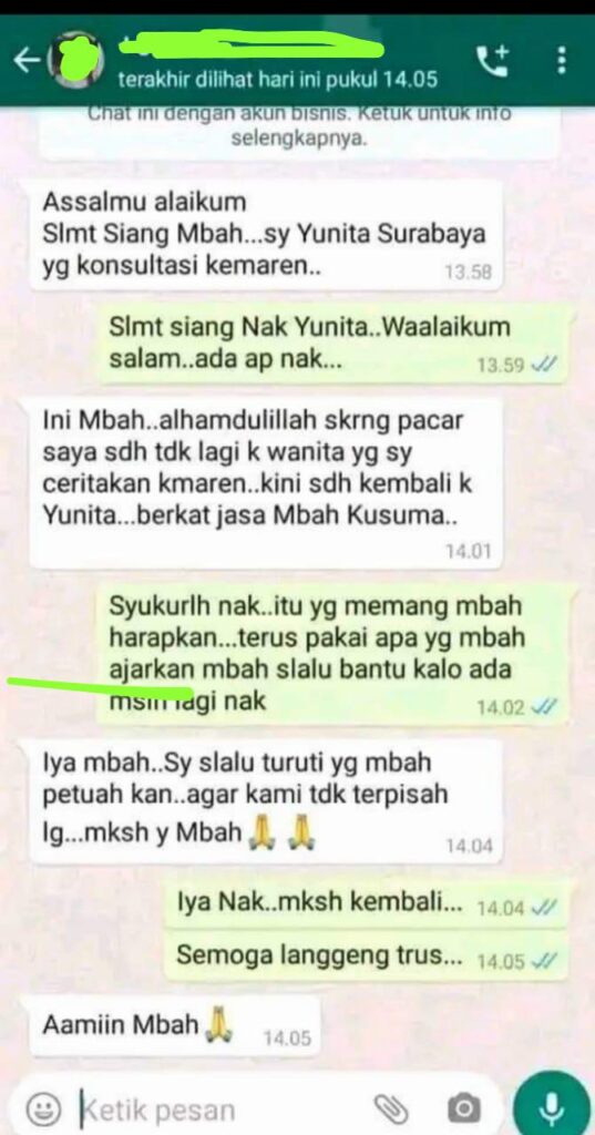 Jika anda sedang membutuhkan pendampingan untuk membantu masalah hubungan, keharmonisan hubungan asmara atau rumahtangga, usaha, silahkan menghubungi kami melalui WhatsApp.